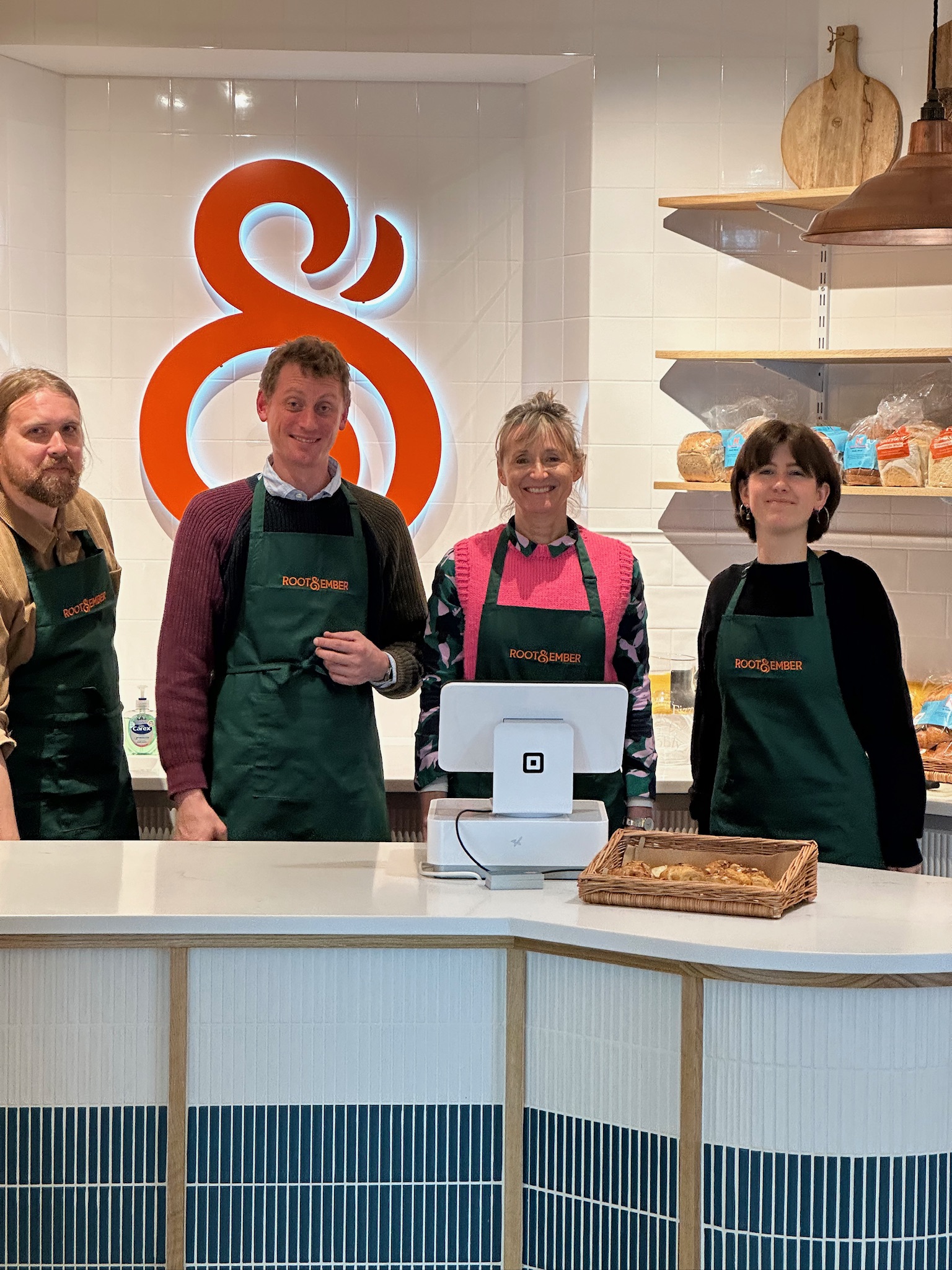 Freddie is the Head Smoker. Whilst the Root & Ember shop hosts the very best pantry supplies, Freddie can be found downstairs in the Root & Ember kitchen curing and smoking his own fish and meat. The results appear upstairs in the shop, sitting on well stocked shelves alongside sauces, chutneys and pastas from businesses nearby. Freddie is joined by Jake and Hedy on the shop floor who ensure that every shopper can sample Root & Ember’s own produce.