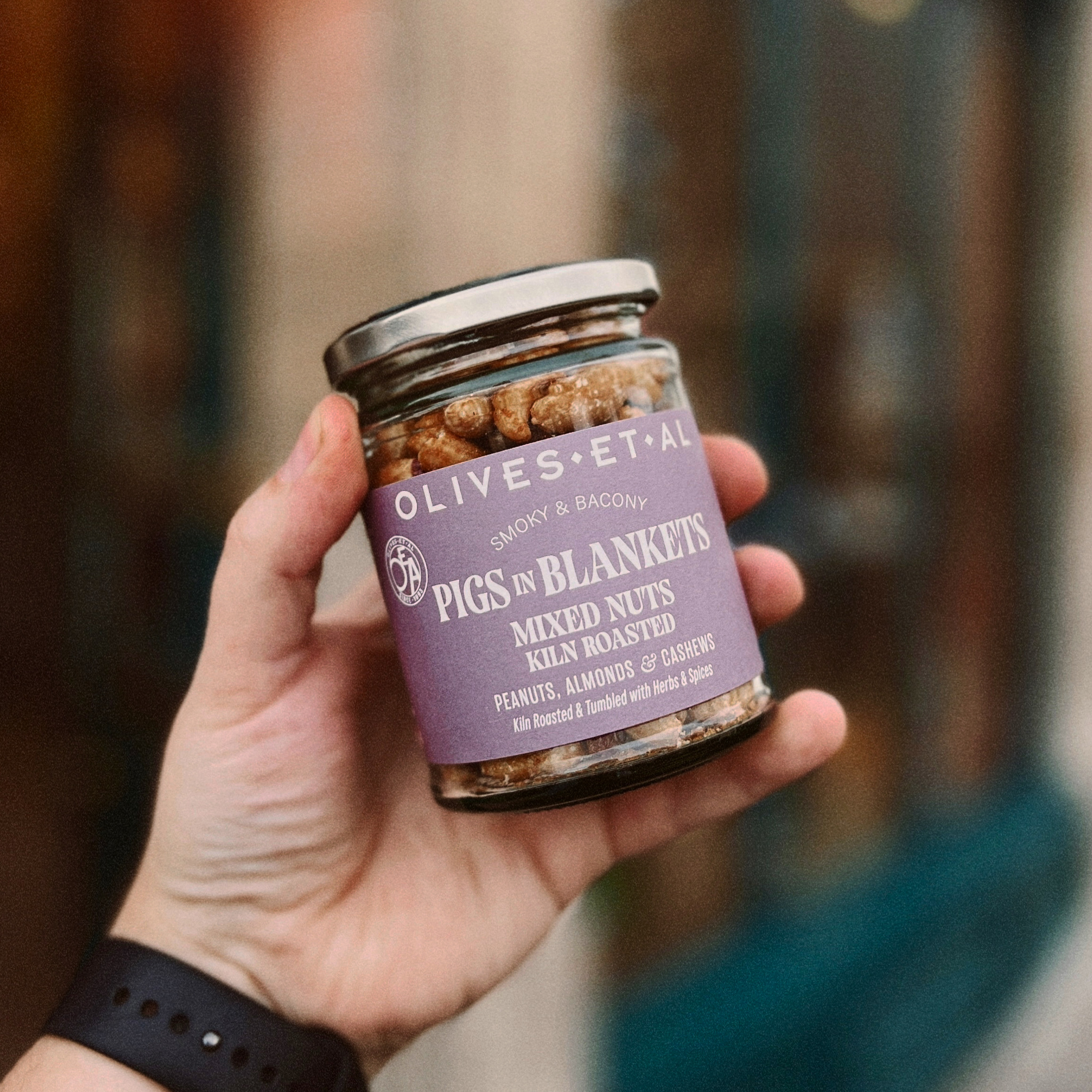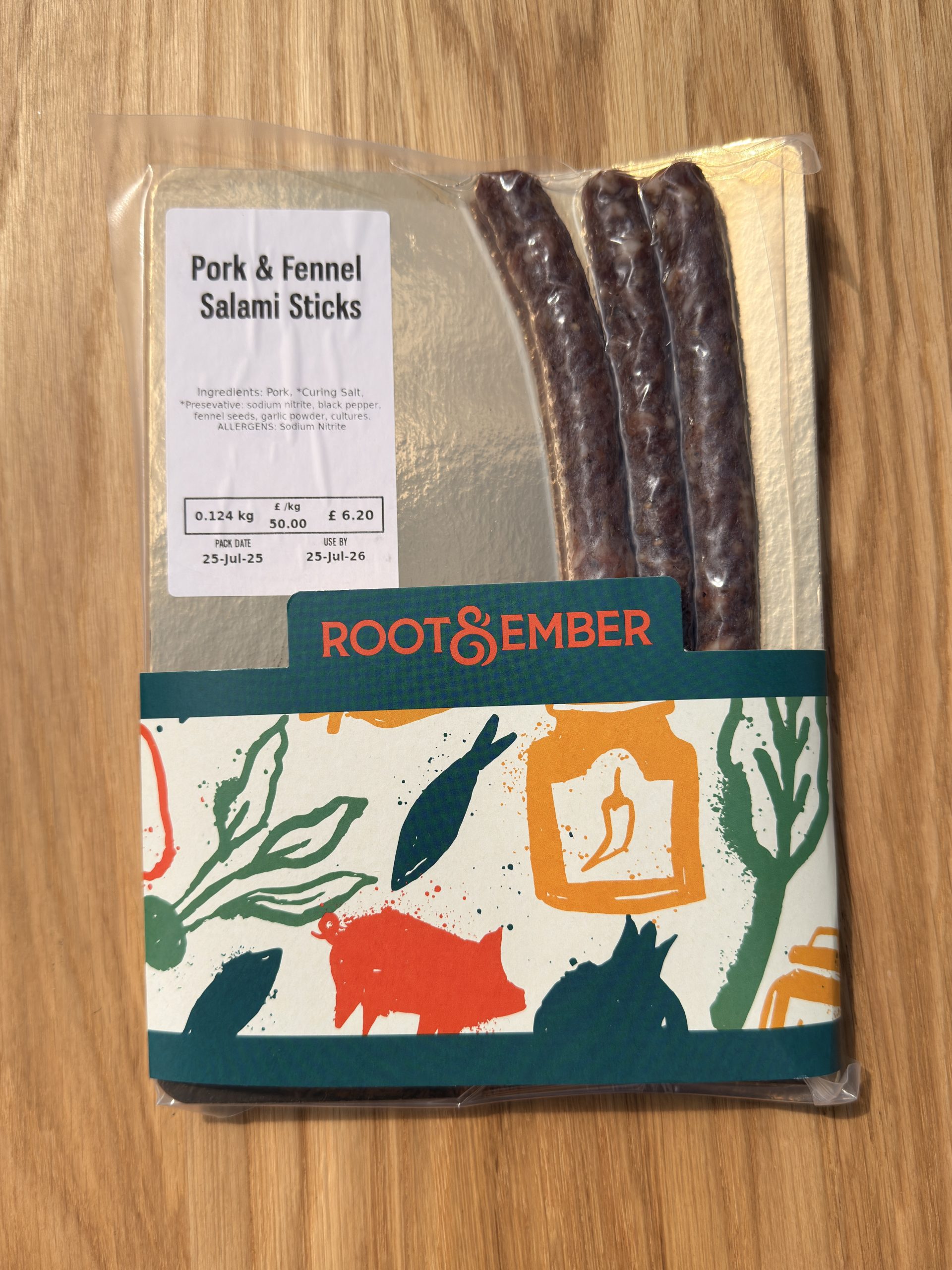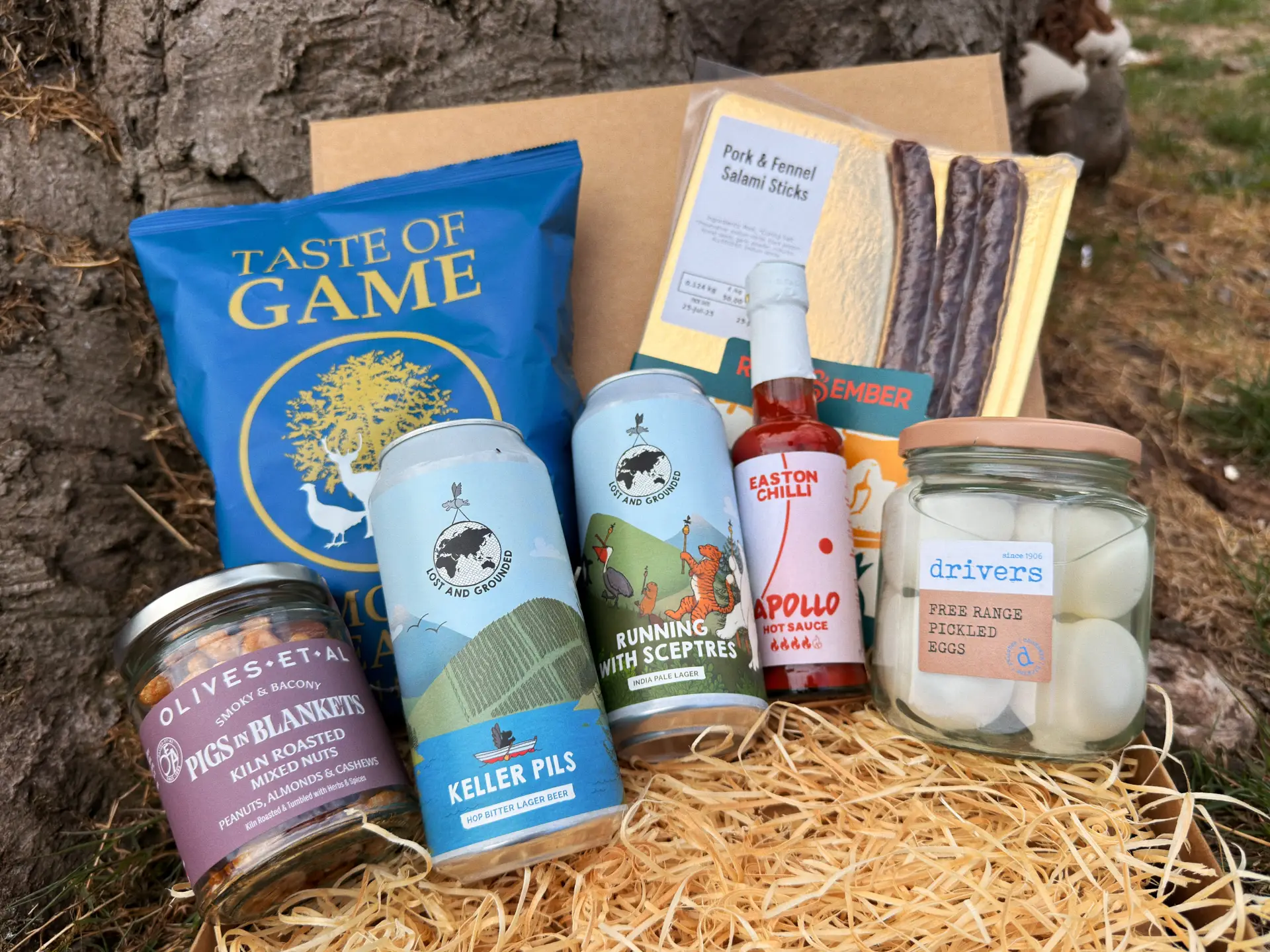 Alongside, you’ll find a mix of moreish accompaniments: Pork & Fennel Salami Sticks from Root & Ember’s own range, smoky Pheasant crisps from Taste of Game and Pigs in Blankets mixed nuts by Olives et Al. Drivers’ classic Pickled Eggs and Easton Chilli’s Apollo Hot Sauce add punch and character.
