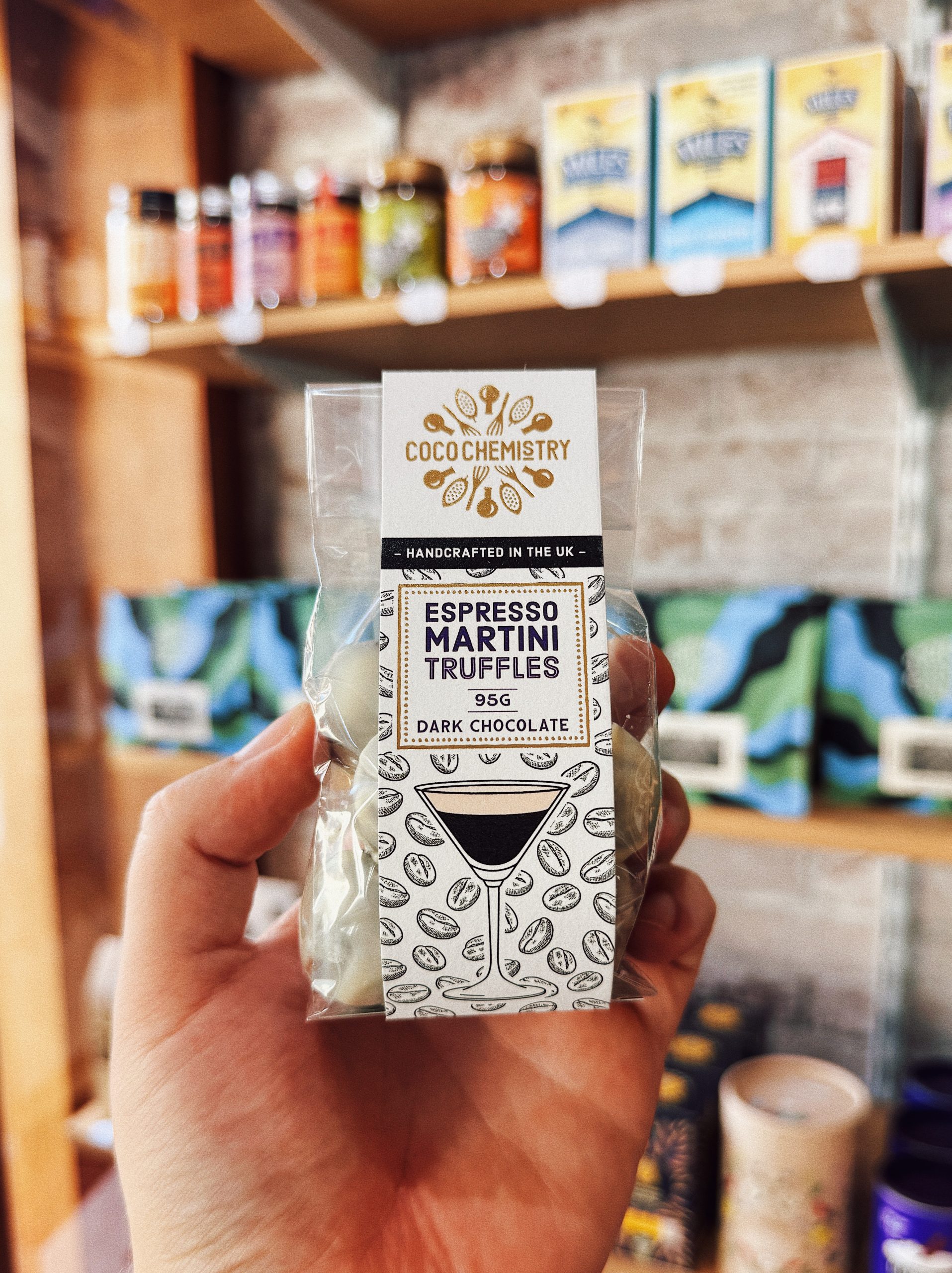 Root & Ember’s Coppa Ham lends delicate richness, matched with Sea Salted Almonds and Verde Green Olives from Olives et Al. Duck crisps from Taste of Game add texture and umami, while Espresso Martini Truffles by Coco Chemistry offer a smooth, spirited finish.